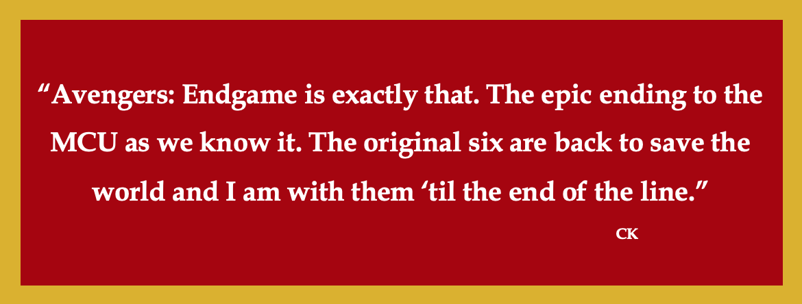 Okay, so I hope I can talk freely now, but just for the record. THERE WILL BE SPOILERS AND I DO NOT WANT TO SPOIL ENDGAME FOR ANYONW WHO HASN’T SEEN IT. People have gotten punched in the face for spoiling it – look it up, that actually happened. And rightly so.