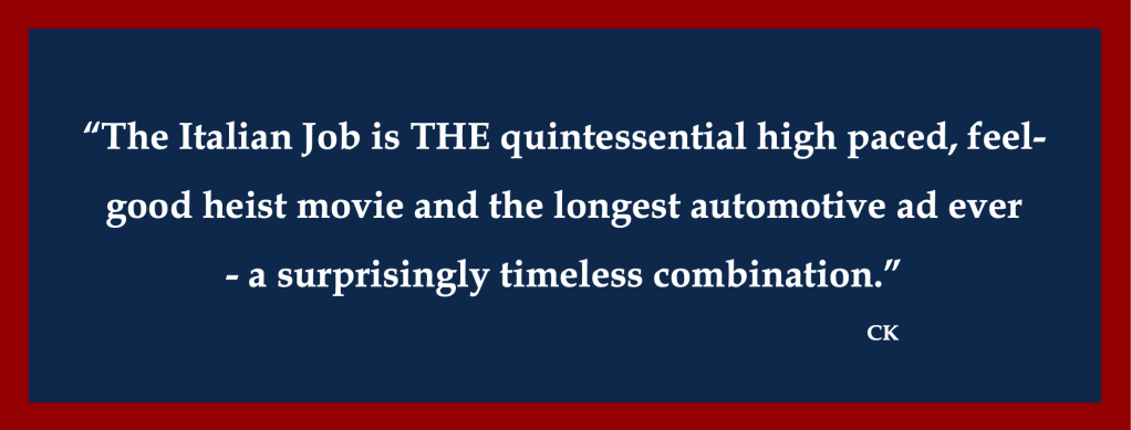 The Italian Job is a feel good action movie and I it is where I learned the true meaning of feeling fine (fucked up, insecure, neurotic & emotional) that I think of to this day as well as the more mysterious one liner “ I trust everyone, it’s the devil inside them I don’t trust.”